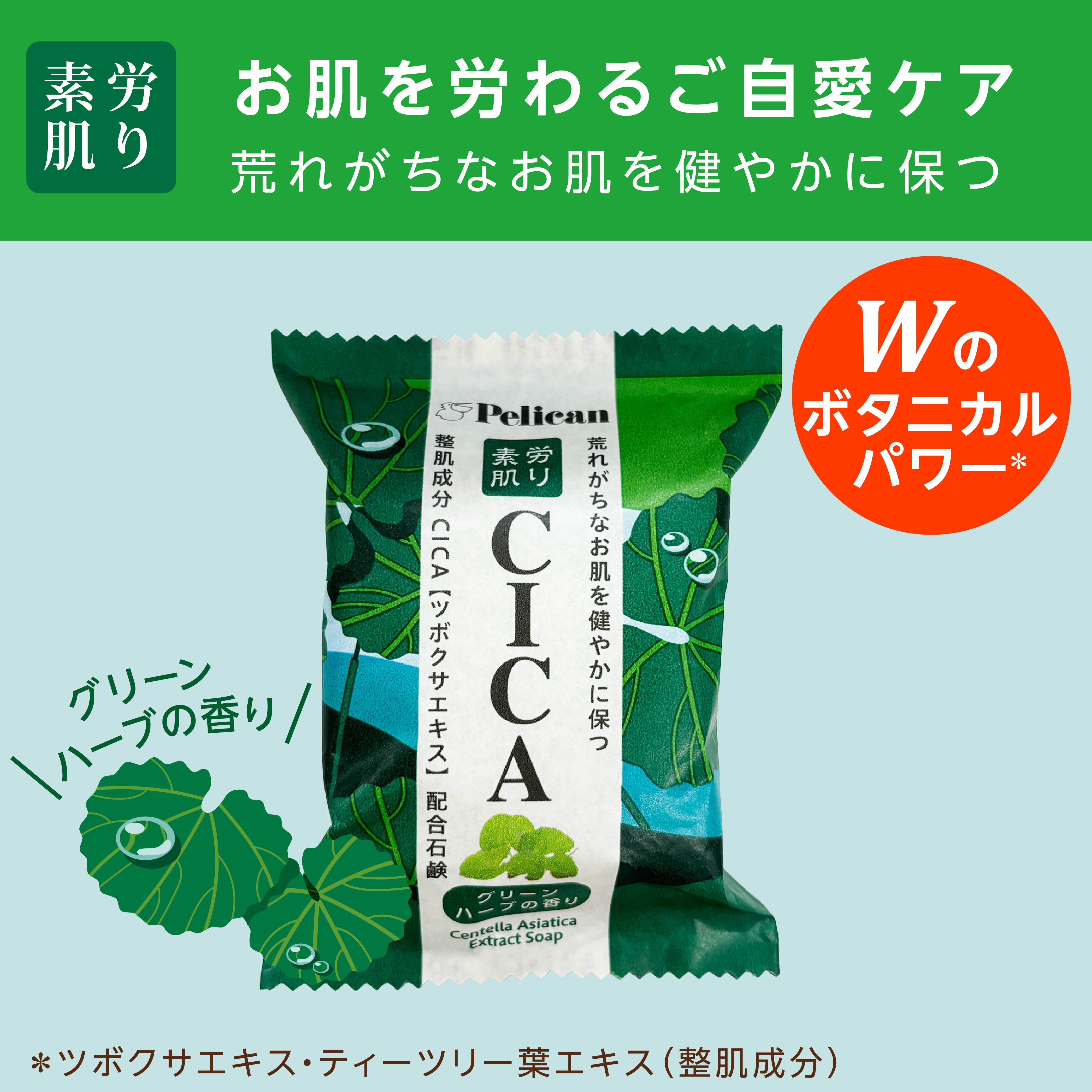 乾燥やマスクによる摩擦、ゆらぎなど、日々さまざまな刺激にさらされる私たちのお肌。そんな素肌をやさしく労り、健やかな状態を保つために生まれたのが全身に使える『ペリカンファミリー石鹸 CICA(シカ)』です。
