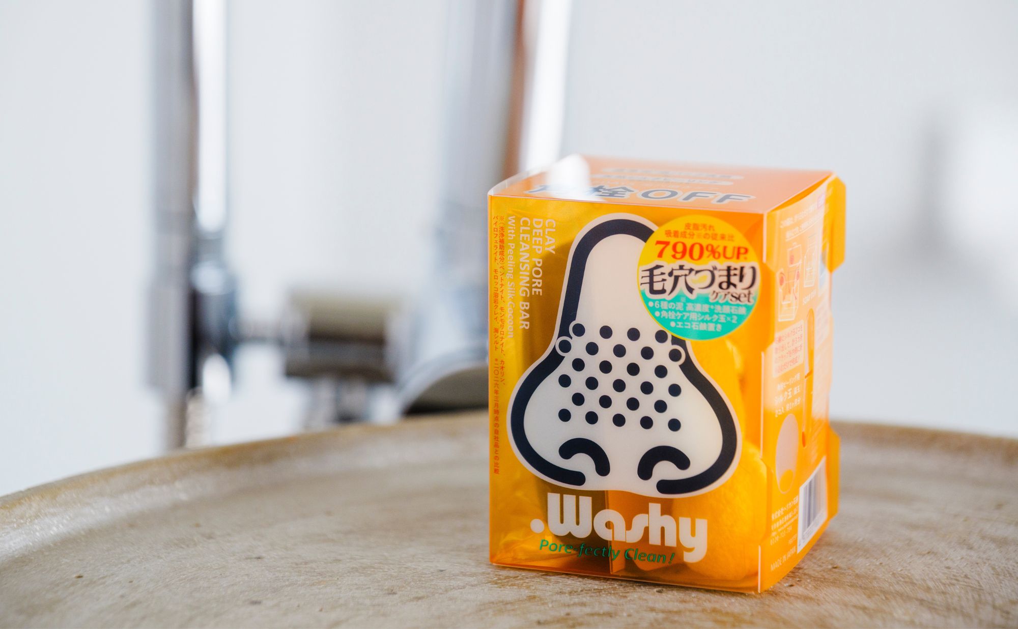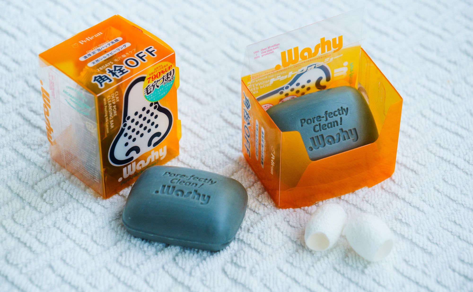 その結果、せっけんは『ペリカン石鹸』が得意とし、長年自社工場での研究実績もある、泥系のものにシフト。さらにせっけん本体に加えて、角栓ケア用のシルク玉2個が付属、せっけん置きになるパッケージに収納されています。このアイテム一つで、お風呂タイムが充実した時間に変わります!