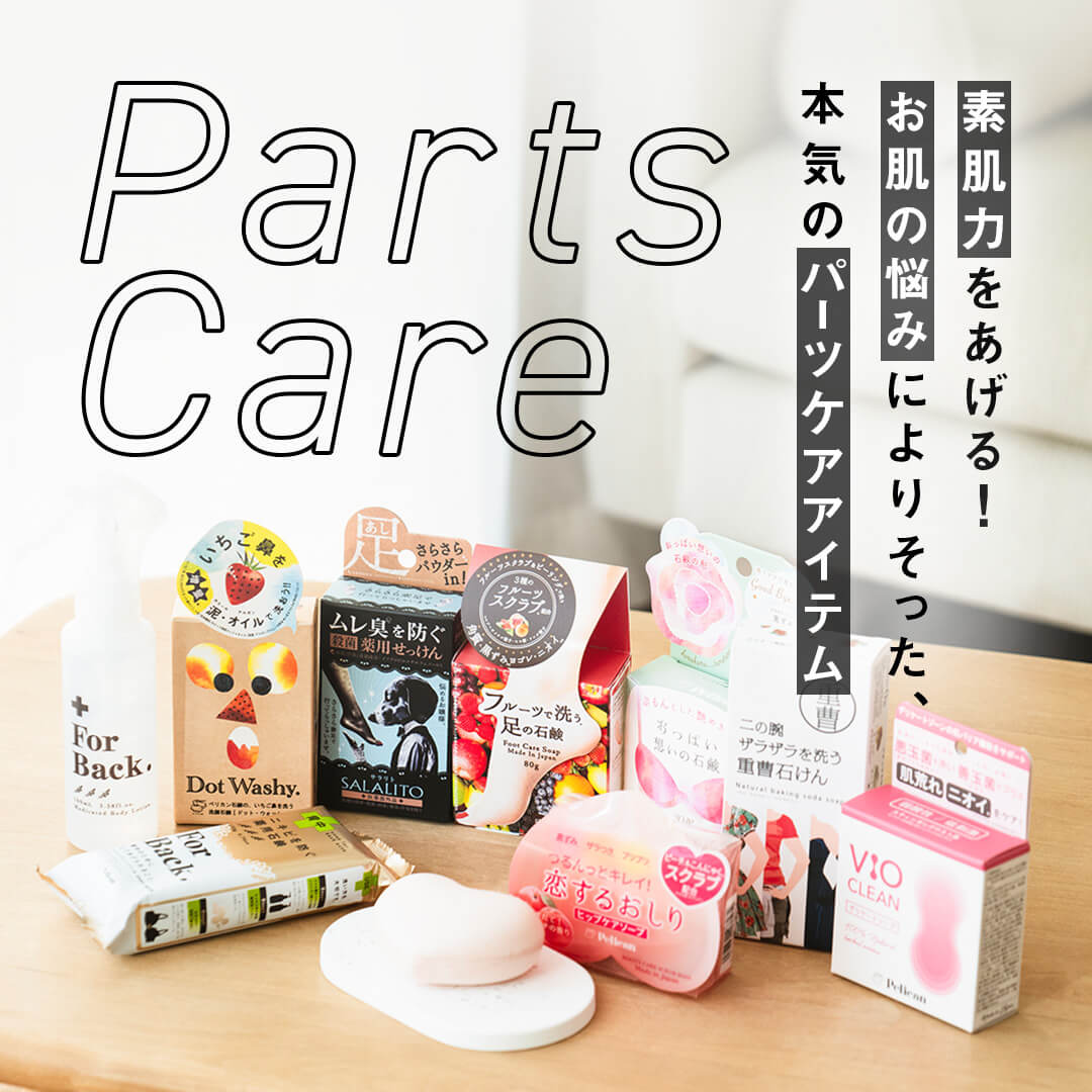 いつのシーズンも皮ふ汚れや乾燥は油断大敵。見逃しがちのおしりや背中、二の腕など・・・。パーツケアにこだわった、お肌想いのソープやローションでしっかりお手入れ。いつでもつるんっとキレイな素肌美人を目指しませんか?
